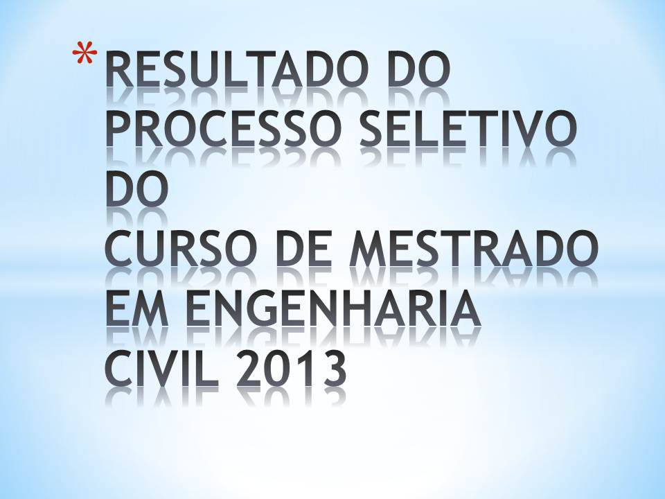 Resultado do Processo Seletivo 2013 - Mestrado em Engenharia Civil
